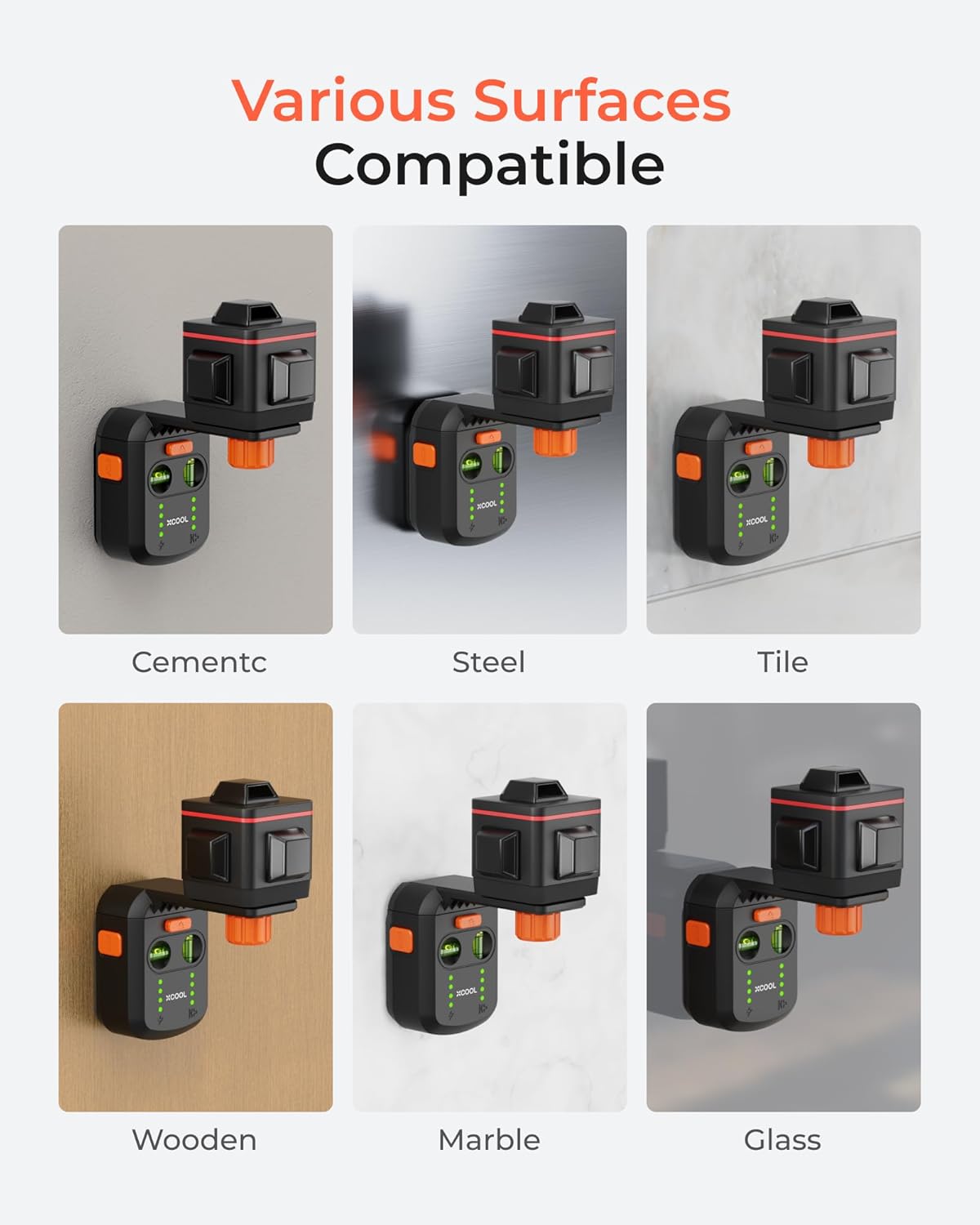 3-in-1 Laser Level Tool with Line Laser. Drill Dust Collector. Laser Level Stand with Suction Cup Wall Mount. 131ft Wall Laser Level for Picture Hanging. Painting. Renovations