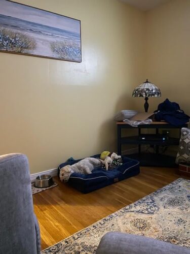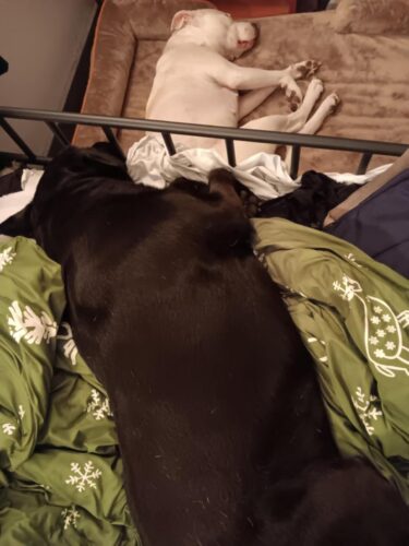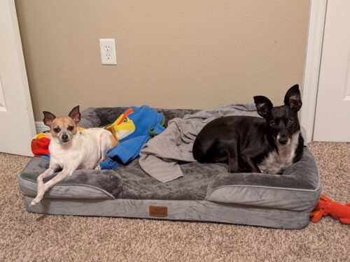 They are currently on the couch in my attempt to train the dogs to staying off my furniture… idk how well that will go but it’s a good sign that out of all the available places they usually lay they have both chosen the new beds.