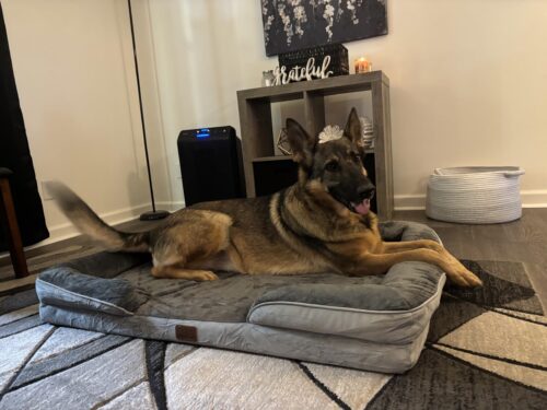 Well, I originally got this to try and transition my dog off my bed at night. He lasted about two minutes and then he was back up on my bed and I gave in. I had moved it into my bedroom right next to my bed. But at least he will lay down on it out in the living room and it seems very comfortable for him. He is 73 pounds and I got an extra large and it’s the perfect size.