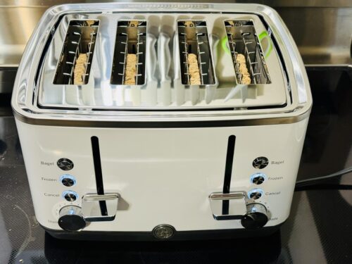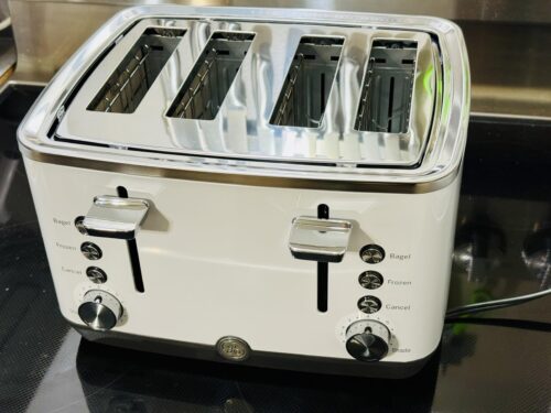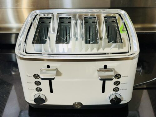 I’ve been quite happy with this 4-slice toaster. It works very well, it cleans up easily, it’s aesthetically pleasing, the functions are nice, and the value is good. I recommend it.