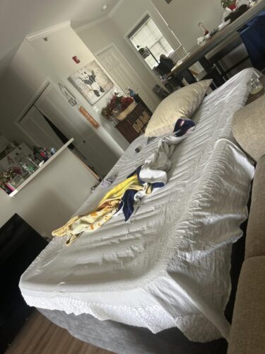 How does it sleep? Well, since I was visiting by myself and my significant other wasn’t with me, I can only speak for a single sleeper. It was really comfortable! It did take a bit of tweaking though as I thought I would like it more firm as I like to side sleep. The first couple of nights were a bit rough as I tossed and turned a bit in my sleep—I found that I couldn’t get comfortable on my side. For the reviews that say that it deflates after sleeping on it, I can say that it did seem to lose some air after the first two nights. The manufacturer does state that it does “stretch” and not deflate. As I wanted to test that statement, I didn’t change the firmness of it by re-inflating it to where I had it. The third and fourth nights were better sleep and I didn’t feel like the mattress deflated at all, so I found the stretch statement to be valid—it wasn’t losing air. After that night, I re-inflated it to where I thought I’d like it. The next night was the same tossing and turning that I had those first two nights, so I concluded that I needed to make it less firm and I actually DEflated it a bit and for the rest of the stay it was perfect! I didn’t have to touch it and I even unplugged it.