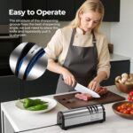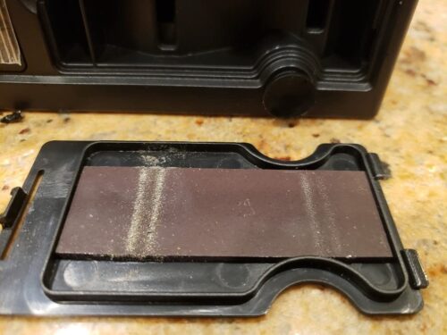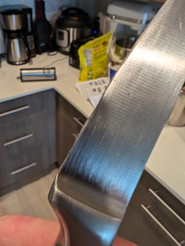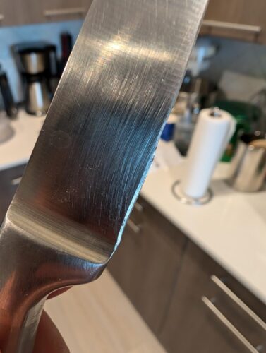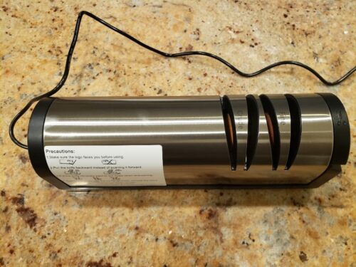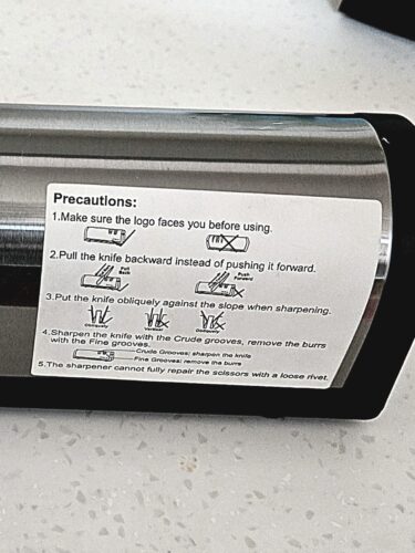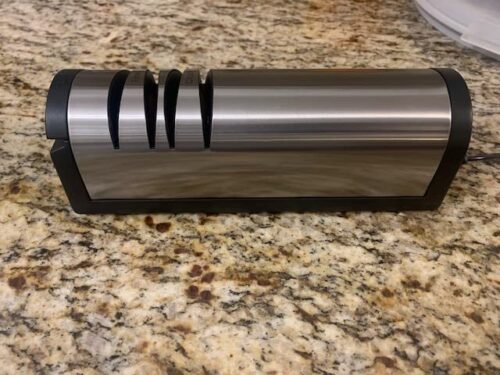 Couple of things I’ve noticed when sharpening knives are the curved top makes it harder to maintain the sharpening angle specifically at the start and end of each knife, the smaller the knife the more wobble you need to account for. My only issue is I’m left handed so I can’t hold the sharpener on top with my right hand. It does have small suction feet which help; so I hold the sharpener at the bottom near the grinder. Flipping the sharpener around and pushing the knives though felt very awkward and isn’t an option.