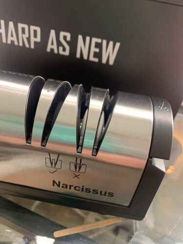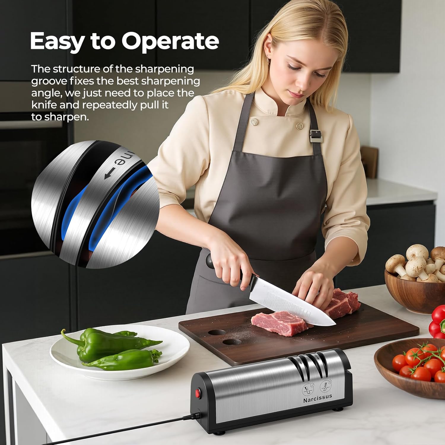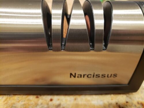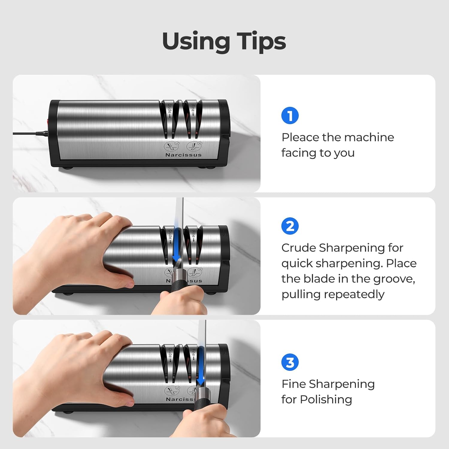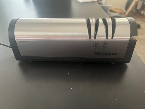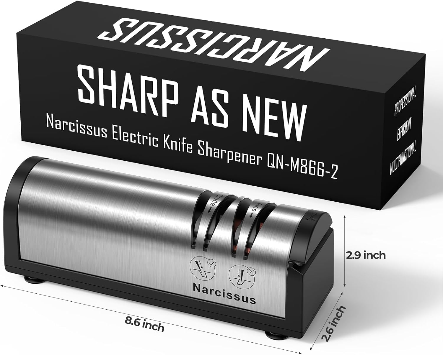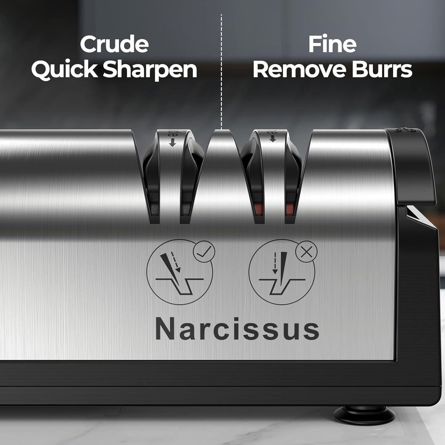 68 reviews for Narcissus Knife Sharpener. Professional 2 Stage Electric Knife Sharpener for Quick Sharpening & Polishing. with Scissors Sharpener and Metal Dust Collection Box. Stainless Steel. Silver