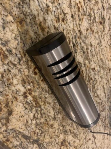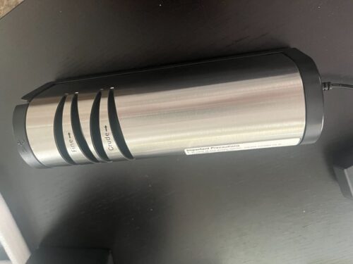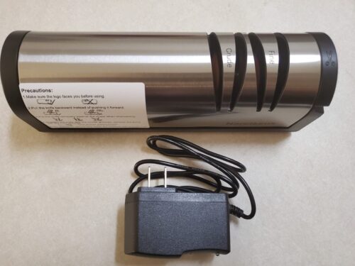 Next as you can see in my video, it is not too loud or overpowering, moderate noise when sharpening knife. It does a very good job, the knife was very sharp. It is easy to setup, just plug in the charger and there is a on and off switch on the left hand side. Very useful. build is strong and this product will last for a long while.