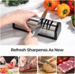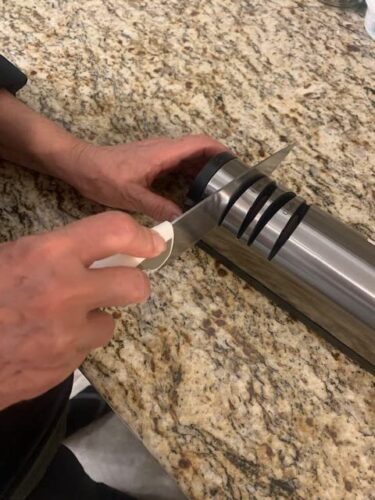 You can easily see from the video how quickly it sharpens your knife and by the way, that knife was an old, not good knife. Forget buying a new knife set each time just get this sharpener and solve the problem!