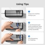 Another great feature is that the mechanism is effective, I can sharpen my knife, box cutter, paper cutter all in this sharpener. It has very clear instruction on the sharpener and I would never forgot how to use it correctly.