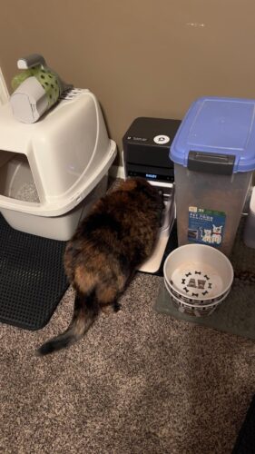 She took to it immediately! Scarlett is a definite scaredy cat of anything new and I was really worried because she doesn't really even like some of the automatic litter boxes I have. I do have a manual one that she uses mainly so using something automatic made me a bit hesitant. She was not afraid of the machine at all and I didn't even have to do a training period. I have a camera on her and I've been checking the app and she's taken to it with no issue. I just placed her in front of the feeder and she saw it open and then she just started munching a bit and that was it. I'm so thrilled about this because this is going to make things so much easier for me. I'm also going to be getting one for the rest of my cats at my household. The one big thing I wish this app had was being able to weigh how much the cats eaten. I think it would be really awesome if they had a scale so you could see roughly how much your cat is eating in a day so that way you can really see if the appetites declining from the very beginning. I think if anyone's able to swing the money for this feeder I would do it. I work in a cat only clinic and I can tell you that cats are primarily stoic and they hide a lot of their ailments. Having things that are just intuitive in your home to help spot any signs early I would recommend doing it. If I had started to notice better the decrease in my cats appetite and her gradual losing weight I could have caught her renal failure a lot sooner. The best thing we can do is cat guardians is being as proactive as possible. This this device allows me to be able to see what my cat is not able to tell me.
