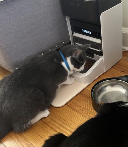 We originally had the two bowl Petlibro feeder, but our one cat would eat all of her food and then rest of her sister’s food. So she was overeating and the other one wasn’t eating enough. This solves that issue. We really appreciate that this gives her the ability to free feed, while we can still control the amount of food dispensed every day. It works great.