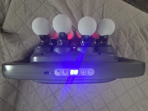 One thing that I really like is that we can pick our own intensities. This massage unit is surprisingly light weight and got up to a full charge in just over an hour. This is geared for so many different muscle groups. I usually target my back and I like to prop it behind me. Hubs like to use it on his hip and thighs. The red light is a huge bonus. Before this unit, we used the guns. This is so much more convenient and is far gentler, yet effective, for our bodies. This is a well-made and durable machine. I feel the price is on point for the quality.