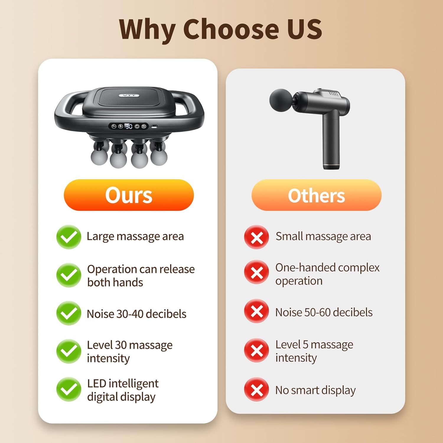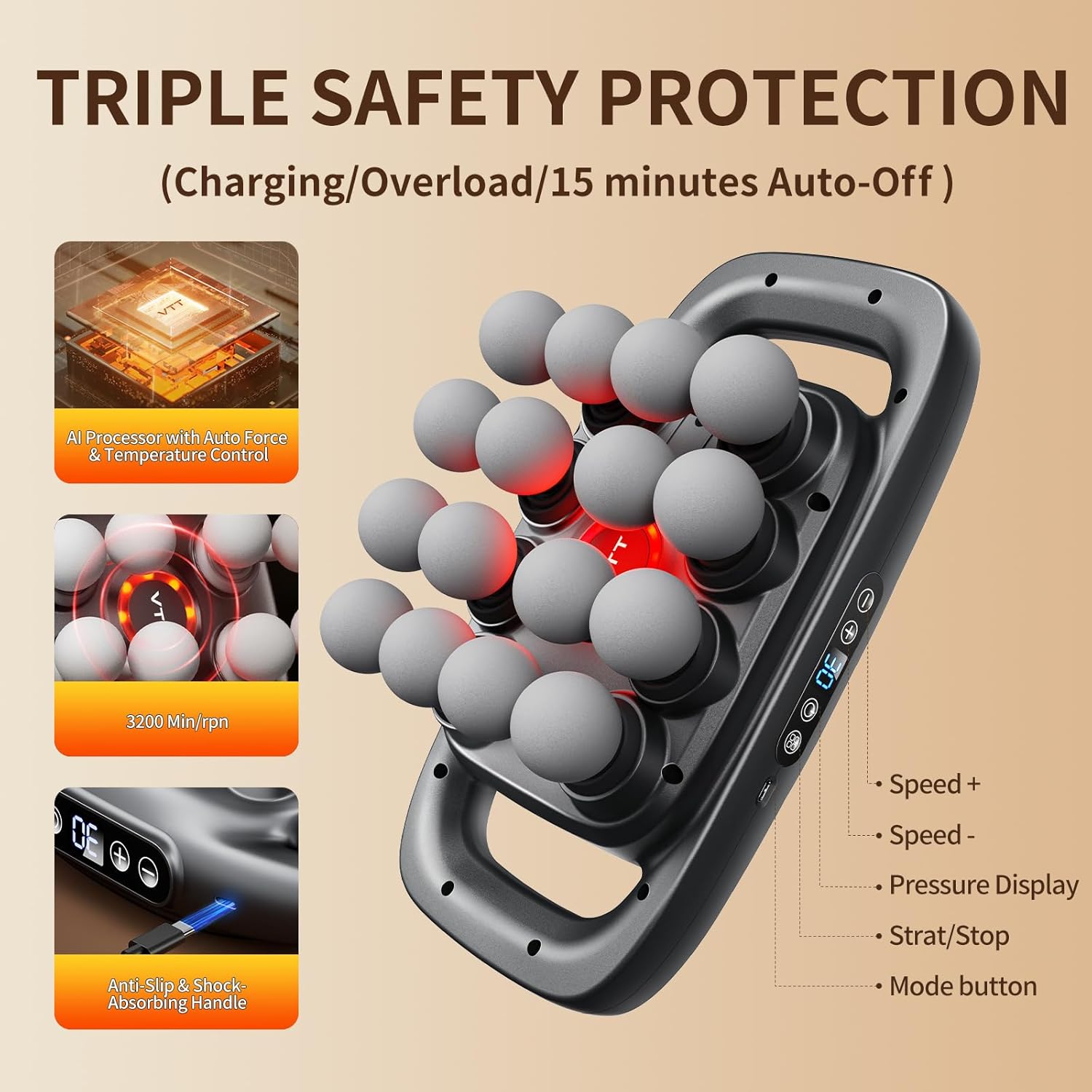 VTT 16-Head Massage Gun Set. Deep Tissue Percussion Massager with 3 Modes & 30 Intensities.Quiet Muscle Massage Gun for Back.Shoulders. Legs. Foot. Body Muscle Pain Relief photo review